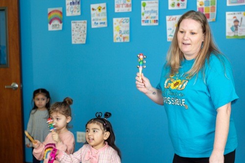 Tiny hearts explore God's love through playful activities, engaging Bible lessons, and loving care.